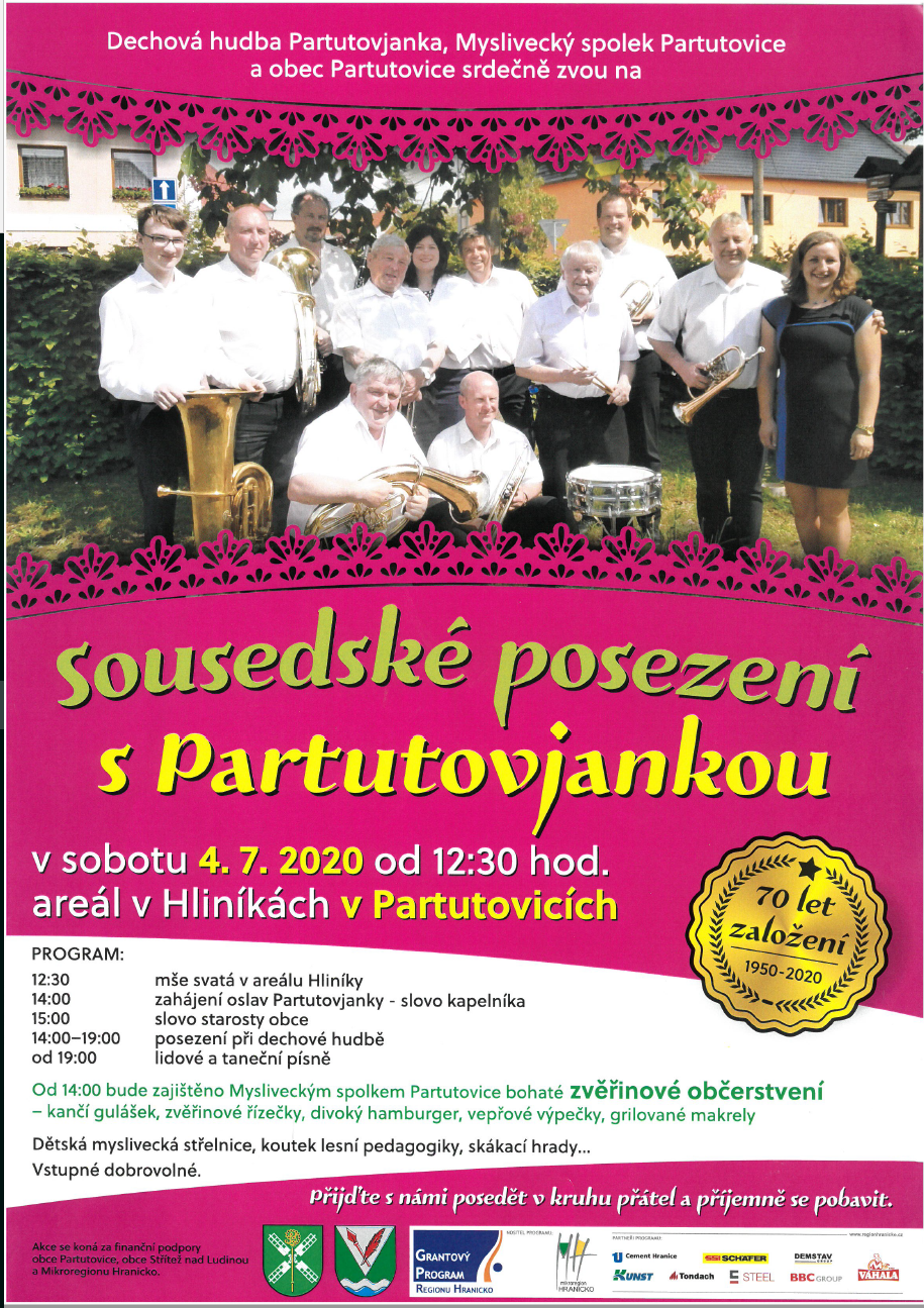 Dovolím si touto cestou pozvat všechny přátelé dobré dechovky na naši oslavu významného 75 letého výročí založení kapely. Můžete se těšit na dobrou muziku a i labužníci si přijdou na své, protože akci pořádáme ve spolupráci s Mysliveckým spolkem Partutovice a jejich myslivecké speciality jsou vyhlášené !!!!! V sobotu 28.června 2025 se na Vás TĚŠIME !!!!!